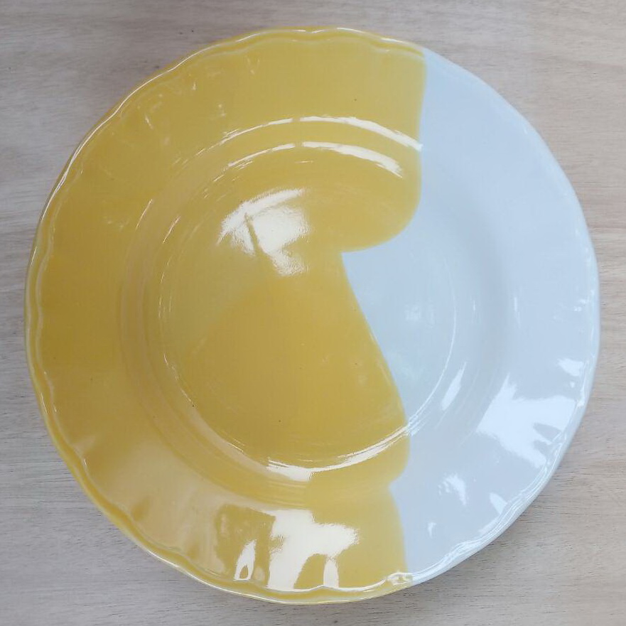จานเซรามิคเนื้อขาว ขนาด 21 cm. วนขอบสีด้านในจาน size กว้าง 21 cm.x ความสูง 3.5 cm.เนื้อสโตนแวร์เกรดเอ ขั้นต่ำ 72 ใบๆละ 21.00-